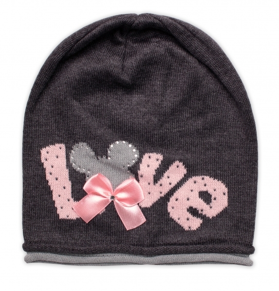 Přechodová dvouvrstvá čepice Love Minnie s kamínky, grafit, 42-52 cm; 98-104 (2-4r)