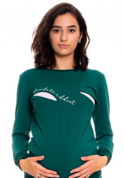 Be MaaMaa Těhotenská, kojící mikina Chocolate Addict, zelená, vel. S; S (36)