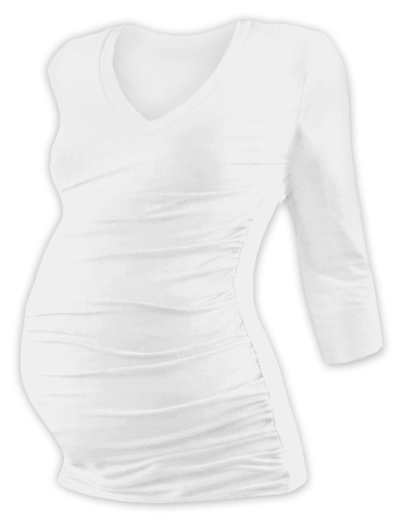 Těhotenské tričko s 3/4 rukávem s výstřihem do V.Složení 92% bavlna+8% elastan.Bavlněná látka je příjemná na tělo i pro citlivou pokožku, díky ní se v ní nepotí. 8% elastanu zajišťuje pružnost materiálu, který se přizpůsobí Vašemu bříšku po celou dobu těhotenství a přitom se nevytahá.Dodáváme ve...