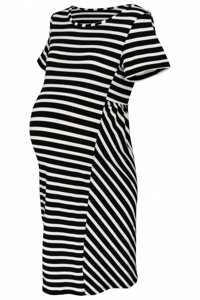 Be MaaMaa Těhotenské proužkované šaty s kr. rukávem - černá/ecru, vel. XL; XL (42)