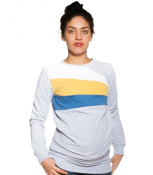 Těhotenská/kojící mikina Delana s výraznými pruhy. Všechny maminky ocení tuto mikinu nejen v době těhotenství, ale i v době kojení. Vhodná od jara do podzimu. Díky speciálnímu střihu zajistí pohodlné a diskrétní kojení. Asymetrické, výrazné pruhy krásně vynikají. Materiál: Bavlna 92%, Elasten 8%...