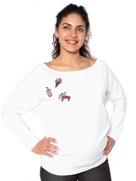 Be MaaMaa Těhotenská mikina, triko s nášivkami - bílé - L; L (40)