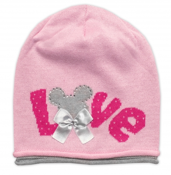 Přechodová dvouvrstvá čepice Love Minnie s kamínky, světle růžová, 42-52 cm; 98-104 (2-4r)