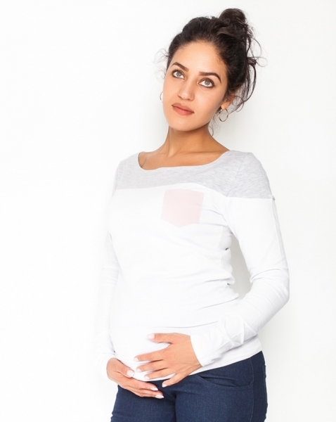 Be MaaMaa Těhotenské triko/halenka dlouhý rukáv Anna, vel. M - bílé/šedý melír; M (38)