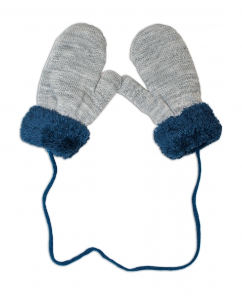 Zimní kojenecké rukavičky s kožíškem - se šňůrkou YO - šedé/granátový kožíšek; 80-92 (12-24m)