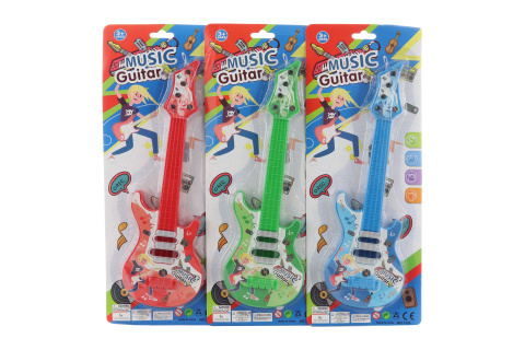 Barevná plastová kytara. Struny nylonové. Baleno na kartě. Rozměry balení 39x15x3,5 cm. Délka kytary cca 32 cm. Věk 3+ prečítať celé
