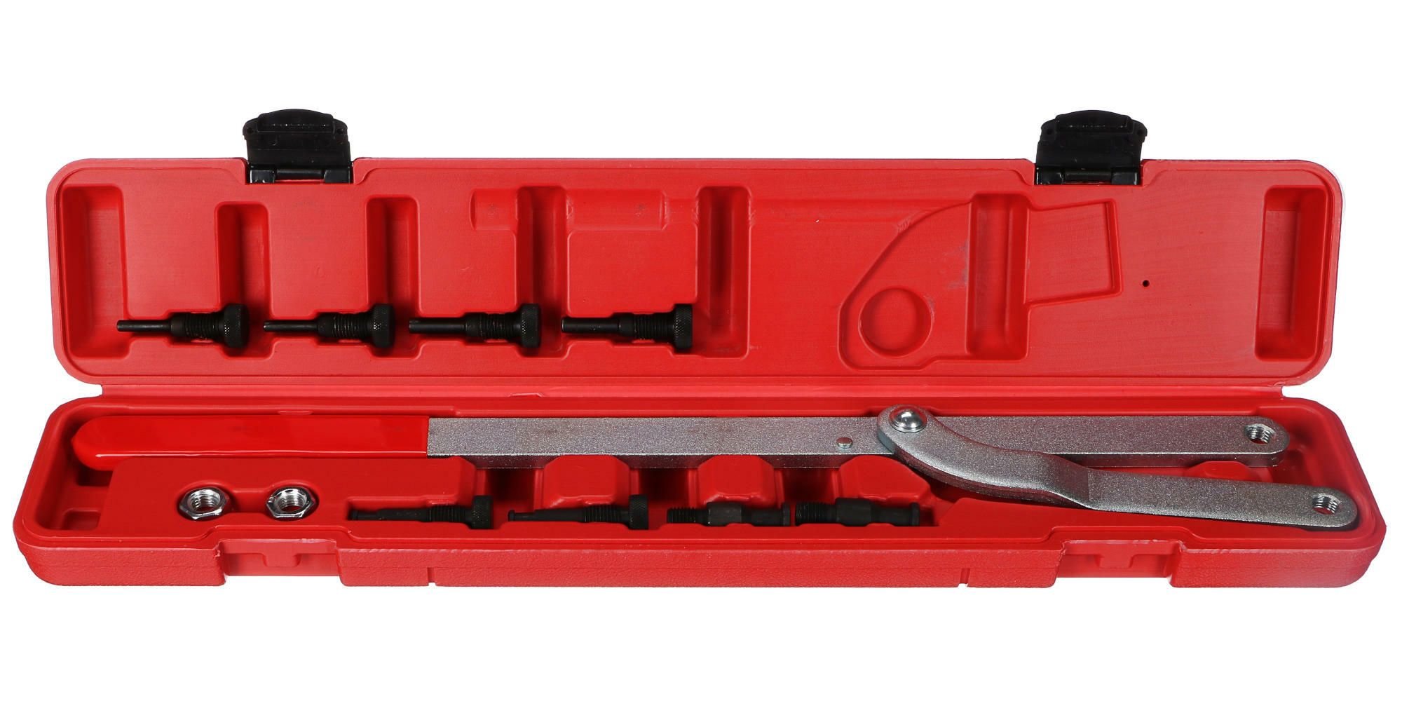 Užitečná sada pro napínání řemenice MECHANIC PULLEY SET 11 je skvělou volbou pro opravu motorů a napínání řemenů nejen do autodílny, ale klidně také do domácí garáže. V sadě je obsaženo celkem 11 dílů, které zahrnují všechny důležité průměry. Klíč je vybaven dlouhou rukojetí s mechanizmem pro napínání řemenice a nastavení napětí.
