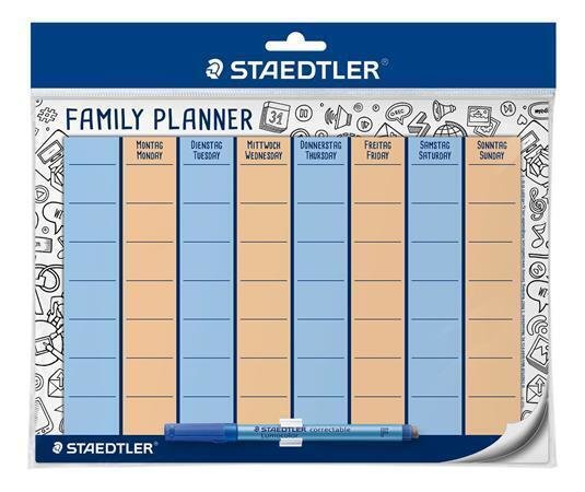 Plánovací rodinná tabule s popisovačem, ideální pro společné plánování.Znovu použitelná, samolepicíVhodná na rovné, suché povrchyStíratelná za suchaRozměr: 297 x 210 mmPopisovač Lumocolor součást balení prečítať celé