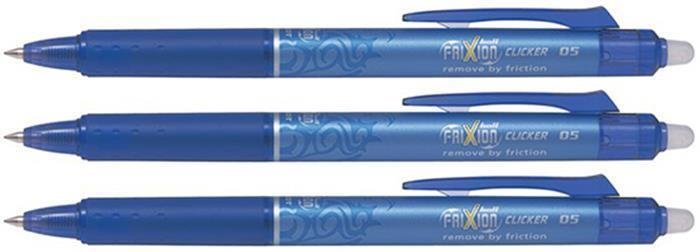 Rollery "Frixion Clicker", modrá, 0,5/0,25mm, vymazatelný, 3 ks v balení, PILOT
