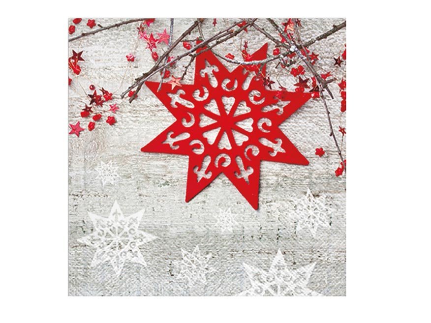 Papírový vánoční třívrstvý ubrousek. Vytvoření decentní vánoční atmosféry stojí na maličkostech. I taková drobnost, jako vánoční ubrousky změní ráz vašeho stolování.