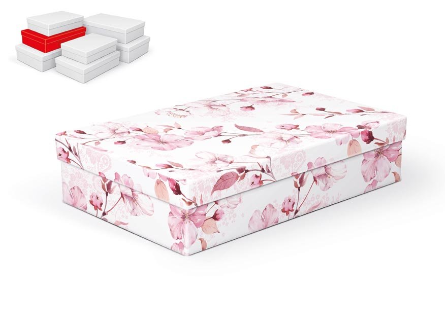 Dárková celoroční krabice o rozměrech 30 x 19 x 7 cmDárková krabice s designem třešňových květů. Vhodná ke slavnostním příležitostem, pro zabalení dárků na oslavy, svatby nebo jen tak, k uschování různých drobností. Dodáváme pouze v setu 7 dárkových krabiček, které jsou ve stejném designu, ale v...