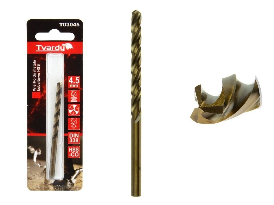 HSS M35 4,5 mm vrták z kobaltového kovu TVARDY
