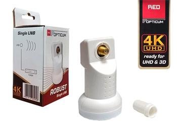 Opticum Robust Singl LNB 0,1 dBUniverzální Singl konvertor pro 1 satelitní přijímač pro digitální příjem s nízkým šumový číslem 0,1 dB. Konvertor byl navržen po mnoha testech v různých příjmových podmínkách.LNB ze speciální série, nejvyšší třídy, s nízkým šumový číslem 0,1 dB a malým fázovým...