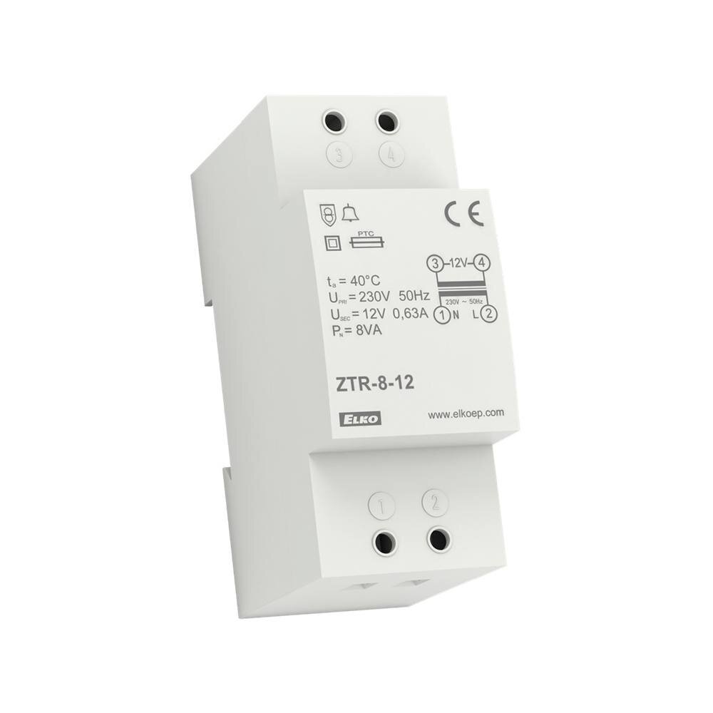 Zvonkový transformátor na DIN lištu 8VA, 12V/0,67A AC
