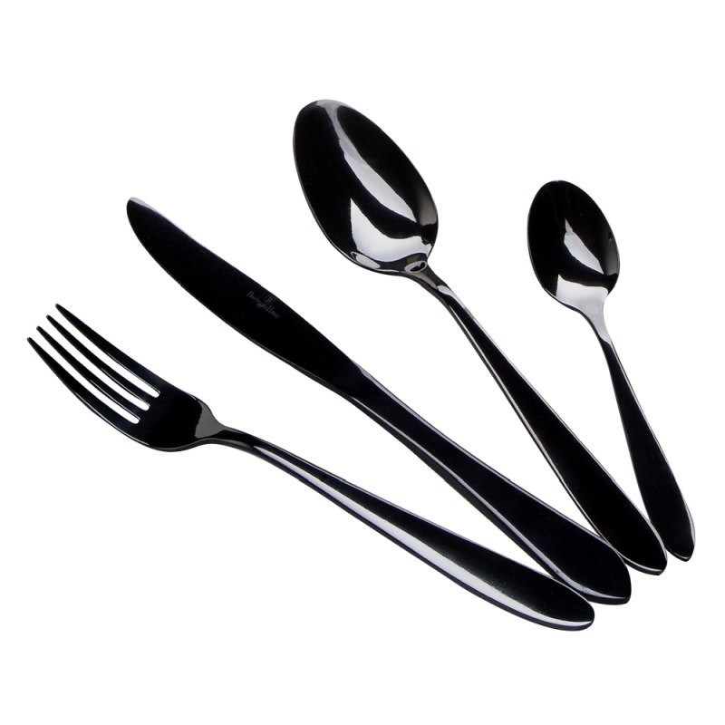 Materiál: nerezová ocel s povrchovou úpravou MIRRORObsahuje:Stolní nůž 6 ks 5,0 mmStolní vidlička 6 ks 3,0 mmStolní lžíce 6 ks 3,0 mmČajová lžička 6 ks 2,0 mmBarva: černá Speciální černá ediceElegantní designVysoká kvalita nerezové oceliReprezentativní dárková krabičkaZrcadlový povrch