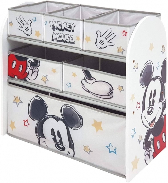 Nádherný barevný dětský regál na hračky z edice Disney, potěší všechny děti. Nudné uklízení hraček se může stát zábavou. Organizér je ideální k uskladnění hraček, obsahuje 6 plátěných boxů, řešených tak, aby si děti mohly ukládat hračky samy.