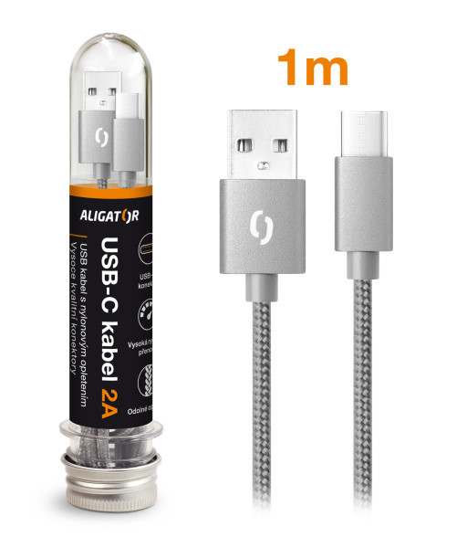 Datový kabel ALIGATOR TUBA 2A, USB-C šedý