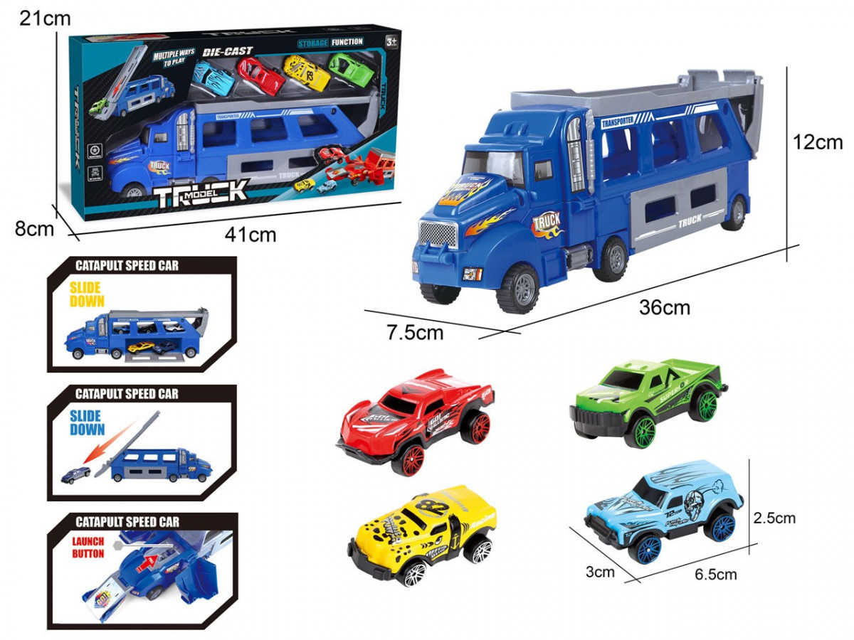 Zestaw pojazdów: Ciężarówka + 6 metalowych aut
