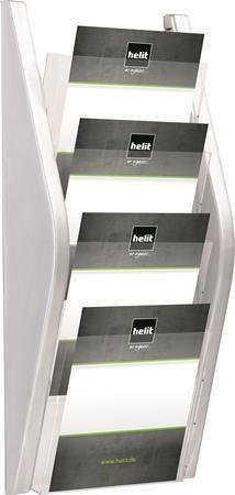 Držák na katalogy, stříbrná, nástěnný, A4, 4 oddíly, HELIT H6270100 (česky)