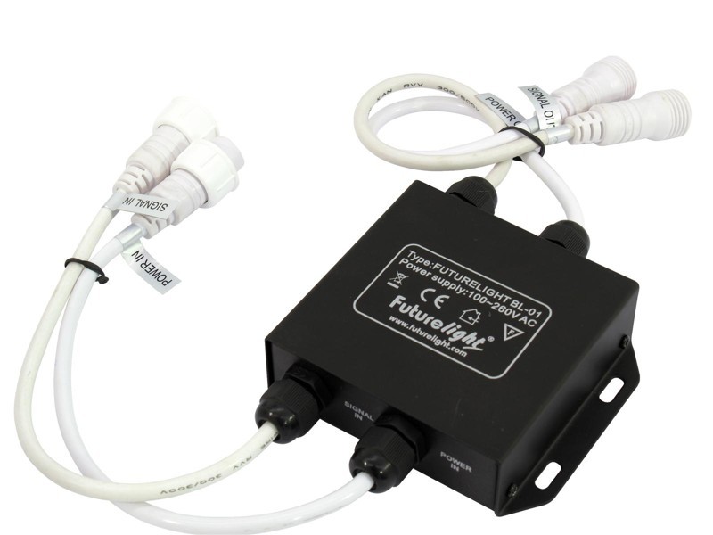 Zesilovač signálu pro LED efekty. Zesilovačposiluje signál k efektům a zároveň obnovujejejich napájení. Nutnost pro větší početefektů. U podlahových panelů PPP-60 jenutné zesilovač vkládat každý 25 - panel, uspotů PS-144 a CPS-144 je nutné zesilovačvkládat každých 16 spotů.