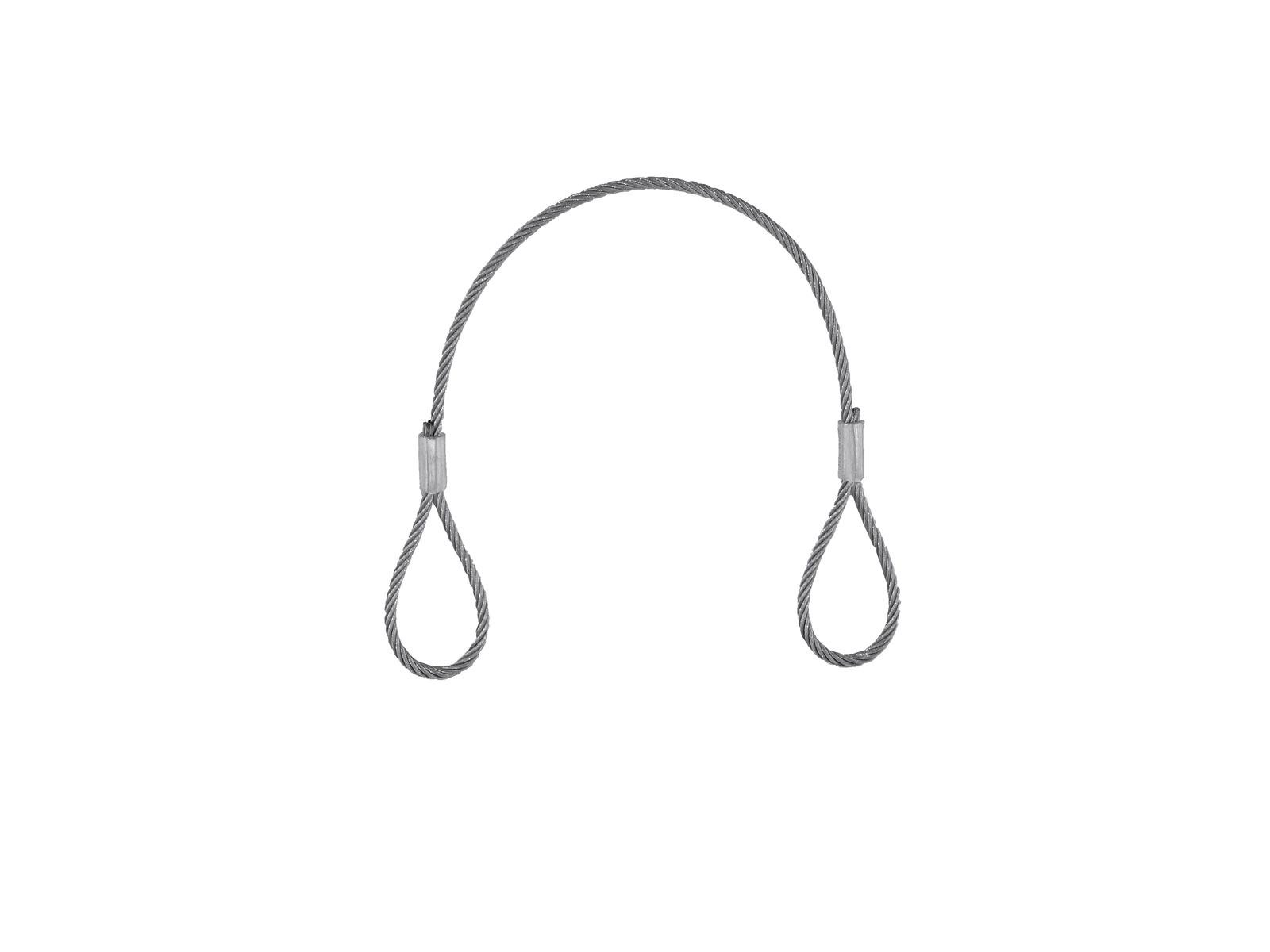Ocelové jistící lanko 400 x 3 mm ve stříbrném provedení. Jednoduché ocelové lanko je zakončené smyčkami na každém konci, dodáváno bez spojovací karabiny. Maximální zatížení 90 kg (WLL 5-násobný bezpečnostní faktor), vhodné pro zajištění instalací lehčích zátěží.