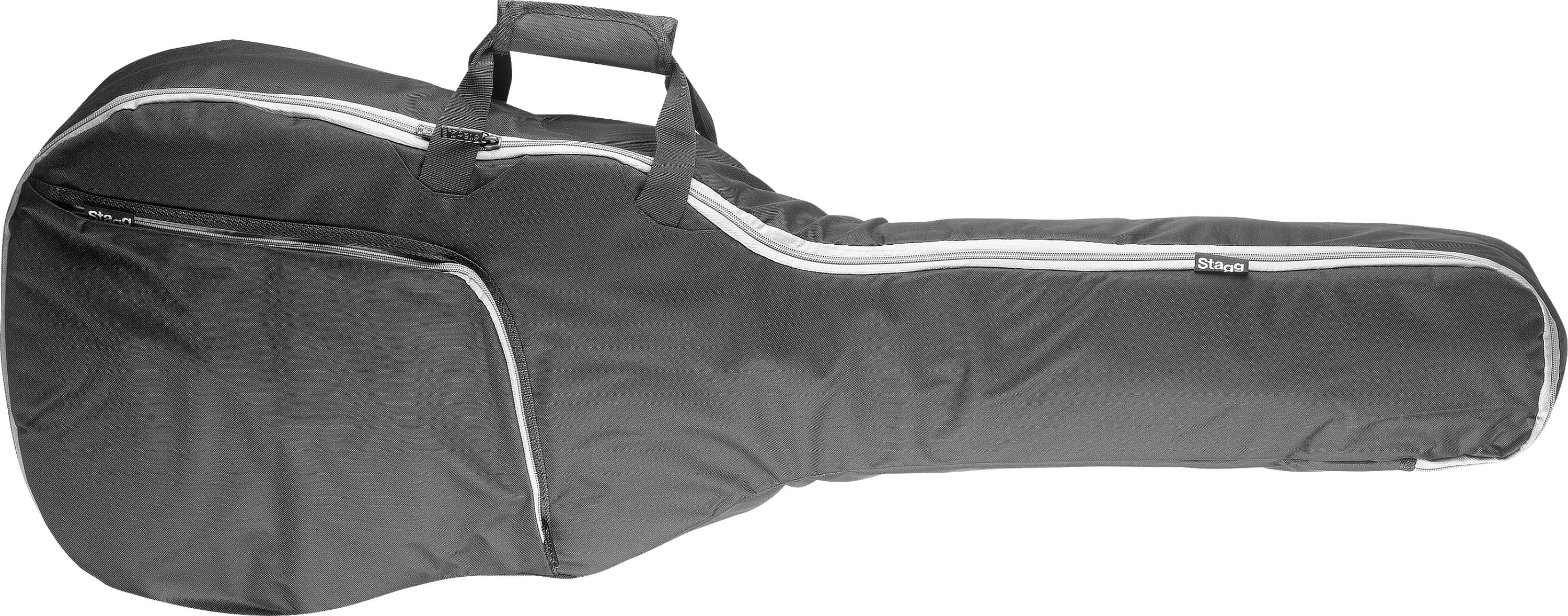 Pouzdro pro akustickou kytaru typu Jumbo, vnější kapsa, dva ramenní popruhy, pevné ucho. Materiál voduodpudivý nylon s výztuhou 10 mm. Barva černá.
