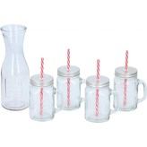 Sklenice s víčkem, brčkem a karafou sada 5 ks