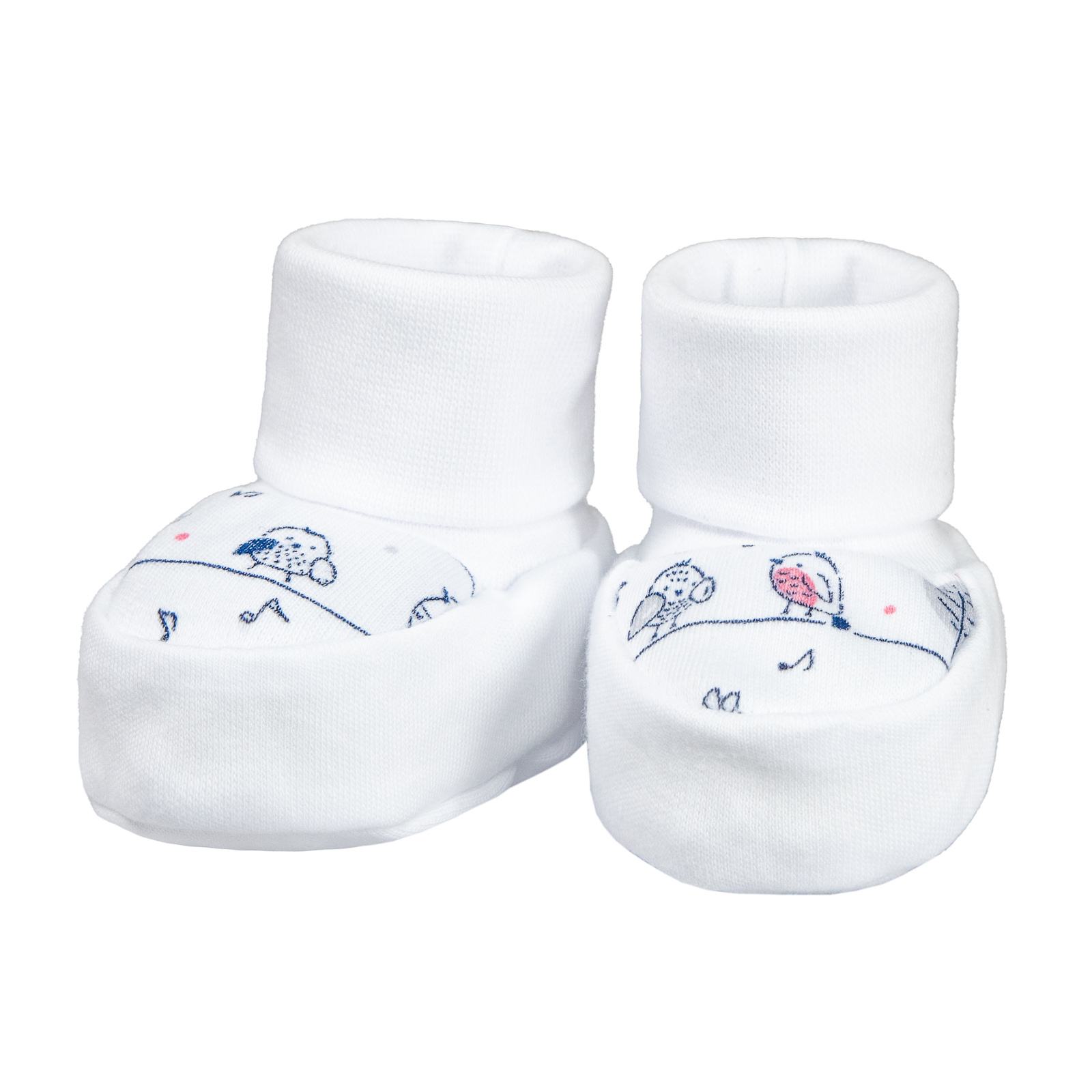 Bavlněné bačkůrky pro miminko Vrabčák; Barva: bílá; Velikost: New - délka stélky: 8 cm