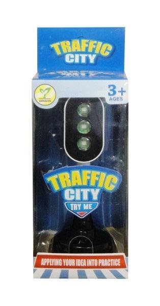 Plastikowy sygnalizator świetlny na baterie. Po każdym wciśnięciu guzika światło odpowiednio zmienia się pojedynczo. Z czerwonego do zielonego. Produkt działa na baterie typu AG13. Baterie znajdują się w zabawce. Podane wymiary są wymiarami opakowania. Zabawka zapakowana w kartonowe opakowanie z przezroczystym okienkiem.