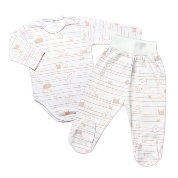 Body dlouhý rukáv + polodupačky Dog & Cat, 2D sada, bílá/béžová, vel. 68; 68 (3-6m)