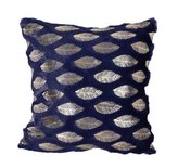 Návlek na polštář, Plyšový s lístečky, tmavě modrý, 40 x 40 cm