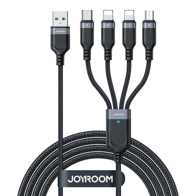 Joyroom USB cable S-1T4018A18 4-in-1 / 3.5A/ 1.2m (black)The Joyroom 4-in-1 cable with up to 3.5A enables data transmission and power restoration at the same time. It features USB-A to 2x Lightning, USB-C and Micro USB connectors, making it widely compatible. A built-in chip ensures safe use, and...