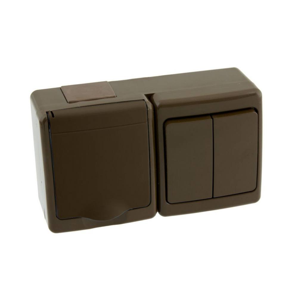 Zásuvka s přepínačem dvojitým č.5 na omítku IP44 hnědá