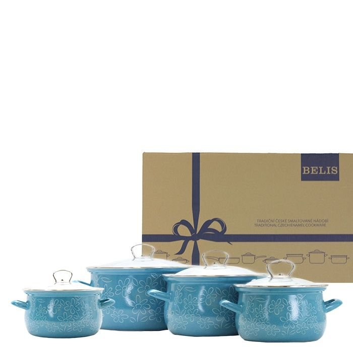 sada 4dílná hrnec+PO sklo tyrkys, KVĚTY, PREMIUM, smalt