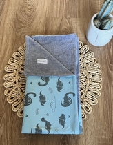 Dětská oboustranná deka Mamatti, bavlna/velvet, 80 x 90 cm, Dino park - modrá/šedá