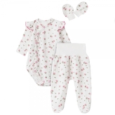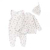 Bavlněná 3D sada, zavinovací body, polodupačky + rukavičky, Amélie, bílá/růžová, vel. 62; 62 (2-3m)