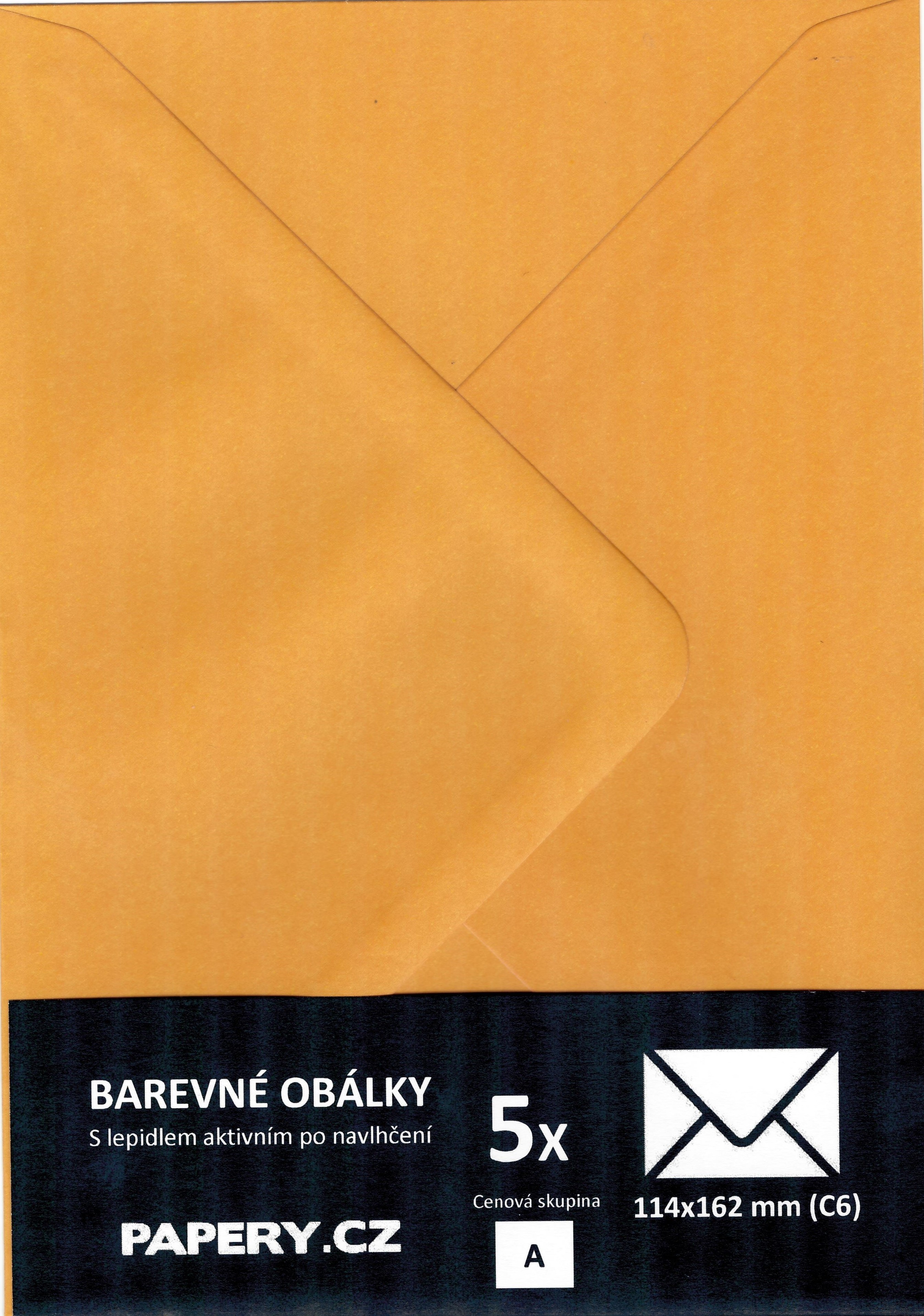 barevná obálka 114X162 mm OKROVÁ, 5 kusů,110 gm2, olizová