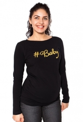 Be MaaMaa Těhotenské triko dlouhý rukáv Baby - černé - S; S (36)