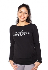 Be MaaMaa Těhotenské triko dlouhý rukáv In Love - černé - M; M (38)