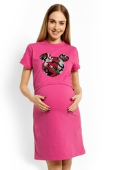Be MaaMaa Těhotenská, kojící noční košile Minnie, XXL - růžová