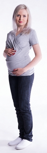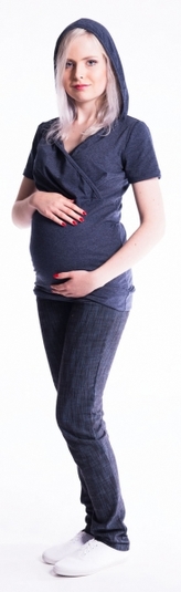 Be MaaMaa Těhotenské a kojící triko s kapucí, kr. rukáv - jeans, vel. L/XL; L/XL