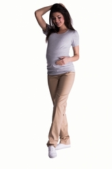 Be MaaMaa Bavlněné, těhotenské kalhoty s regulovatelným pásem - béžové, vel. XXXL; XXXL (46)