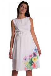 Be MaaMaa Těhotenské šaty bez rukávů s potiskem květin - ecru; XS (32-34)