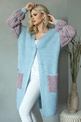Be MaaMaa Dlouhý kardigan s nabíranými rukávy nejen pro těhotné - modrý; M/L
