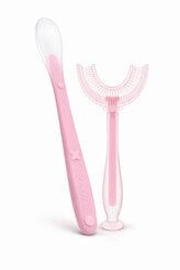 Silikonová lžička + kartáček ve tvaru U - růžová; růžová; silikon