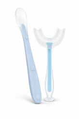 Silikonová lžička + kartáček ve tvaru U - modrá; modrá; silikon