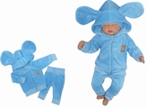Z&Z Velurová, semišková tepláková souprava s oušky MYŠKA - sv. modrá; 56 (1-2m)