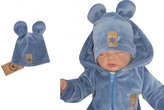 Z&Z Velurová čepice na zavazování s oušky, modrá, 68/74