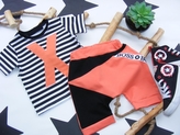 G-baby 2-dílná sada tričko kr. rukáv, kraťásky New Boss X - proužek, cihlová; 80 (9-12m)