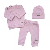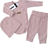 Žebrované zavinovací body, tepláčky a čepička Kazum 3D bavlněná sada,pudrově růžová,vel.68; 68 (3-6m)